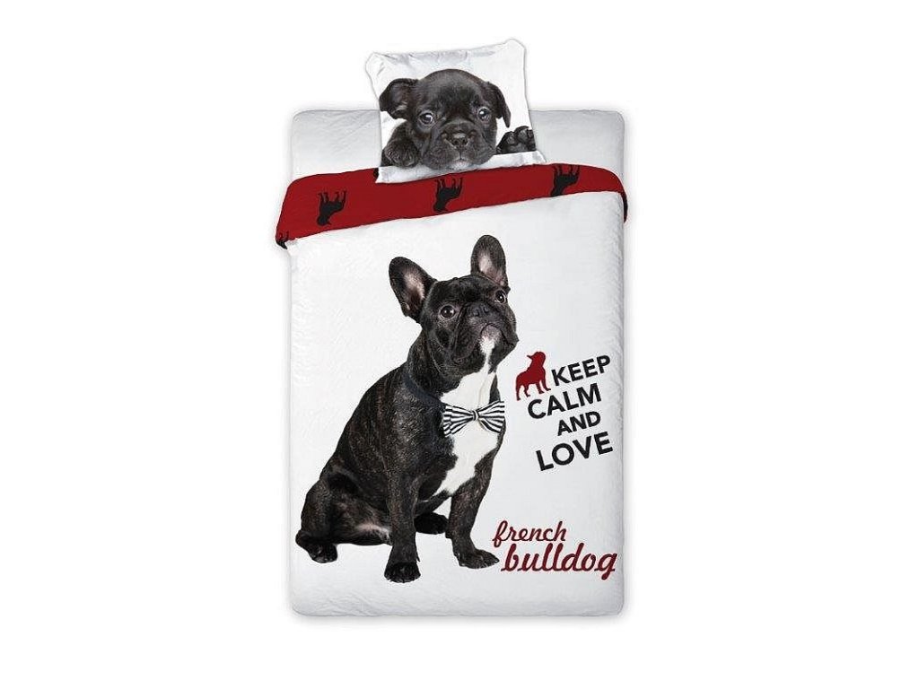 Milovníky pejsků určitě potěšíme tímto povlečením na jednolůžko, na povlečení je obrázek pejska rasy Francouzský buldoček.