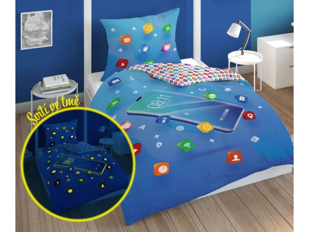 DETEXPOL Povlečení Telefon blue svítící 140/200, 70/80