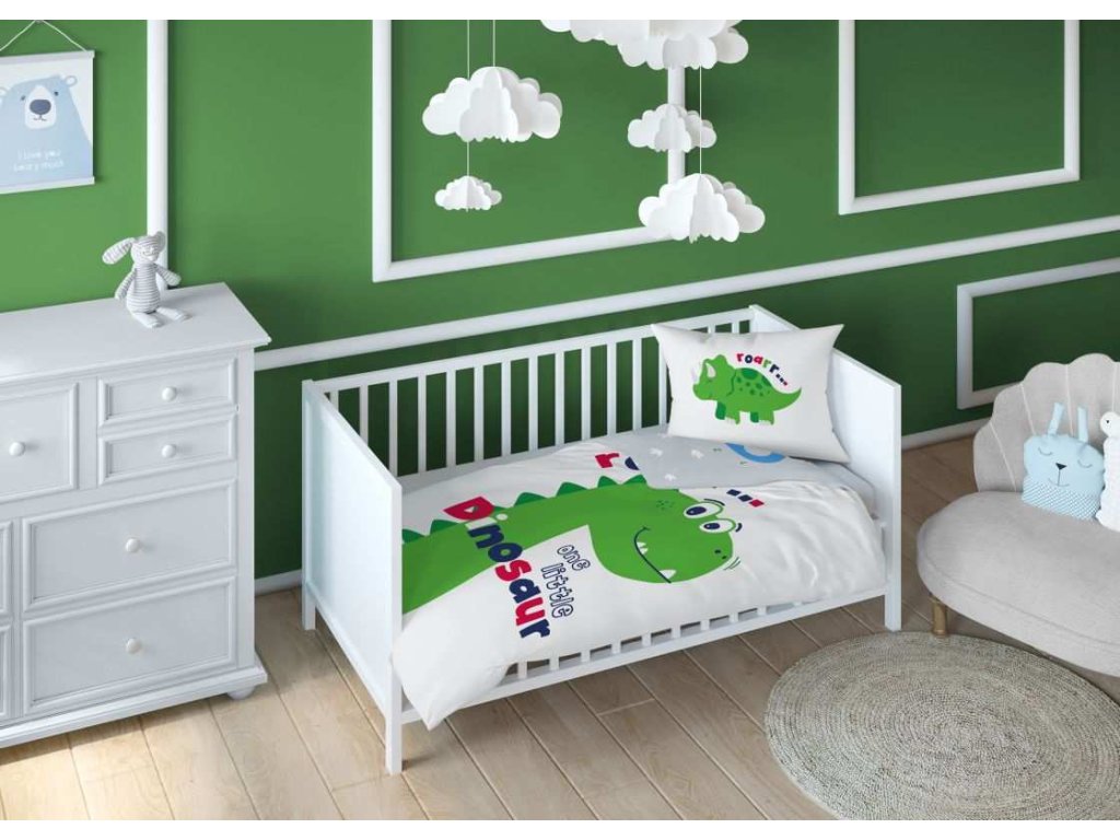 Hledáte kvalitní, bezpečné a krásné povlečení do postýlky pro chlapečka či holčičku? Tento veselý dinosaurus je ideální pro každý dětský pokoj.