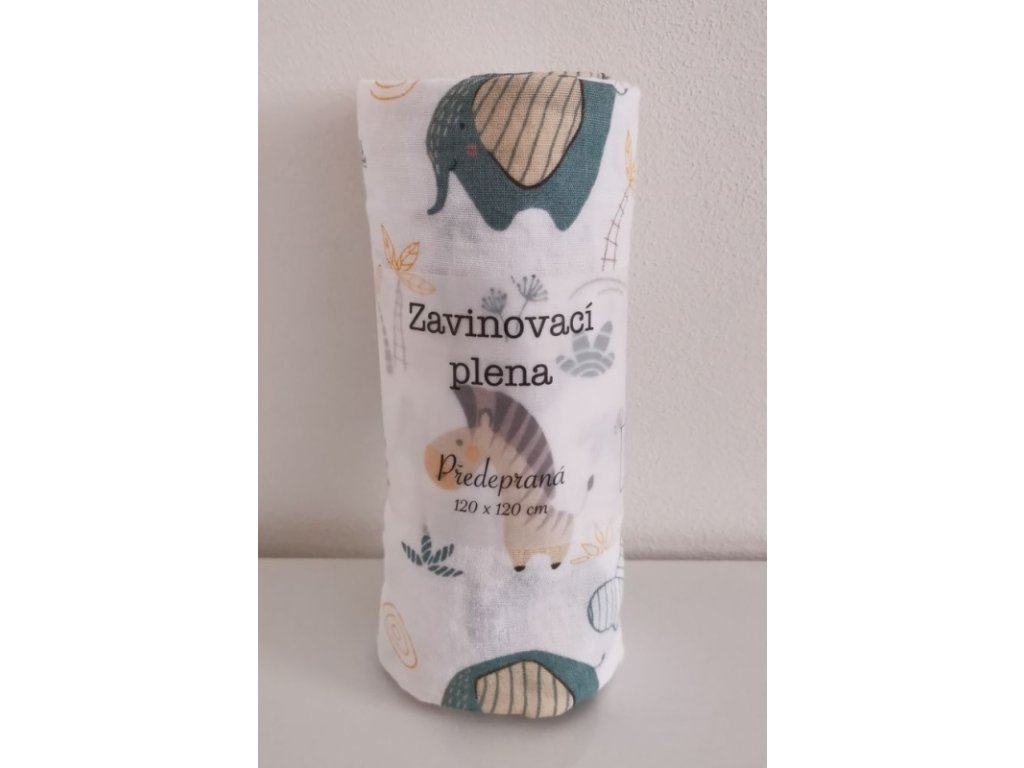 Kvalitní zavinovací předepraná bavlněná plena s potiskem 120x120cm. Zavinovací plena je vyrobena z čisté bavlněné příze, která je předepraná a je nejlepší pro styk s jemnou dětskou pokožkou. Zavinovací plena je jemná, měkká a příjemná na dotyk - je jemnější a měkčí než klasická plenka. Zavinovací plenku lze vzhledem k její velikosti 120x120 cm použít také jako osušku, plenku na kočárek, lehkou přikrývku v parných dnech, přikrývku při kojení, nebo jako podložku pod mimiko do postýlky i do kočárku. Zavinovací plenku lze vyvářet na 95°C, žehlit na vysoký stupeň. Vysoká kvalita šití minimalizuje možnost třepení. 1.jakost Gramáž: 110 gramů/m2, Certifikát Oeko-tex Standard 100