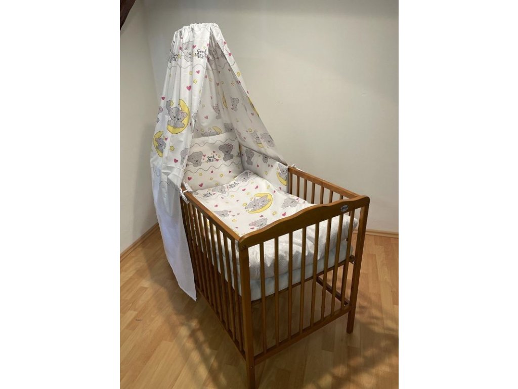 Souprava na postýlku 4D obsahuje 1ks povlak na peřinku 90/130, 1ks povlak na polštářek 45/60, 1ks mantinel 195/28, 1ks nebesa 150/200, doporučujeme před prvním použitím vyprat na 40°C, mantinel na 30°C, ušito v ČR.
