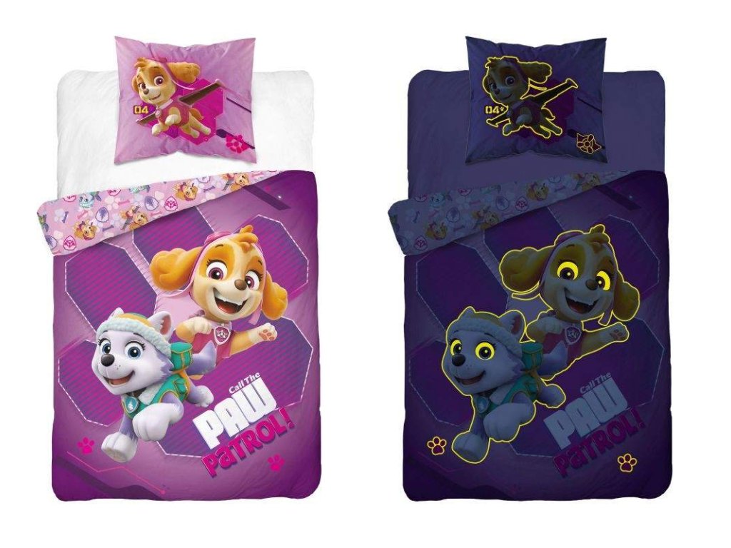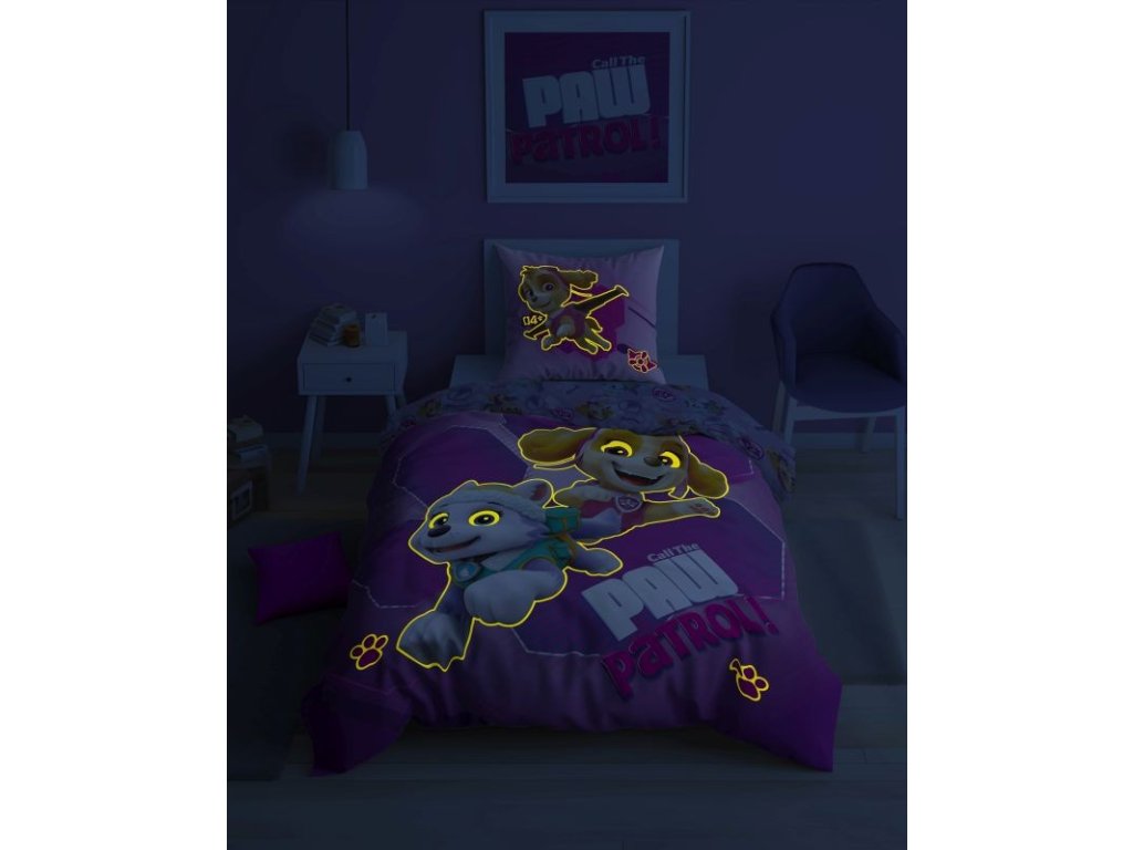Dětské svítící bavlněné povlečení na velkou postel s motivem Tlapková Patrola. Kvalita potvrzena certifikátem Oeko-Tex Standard 100.